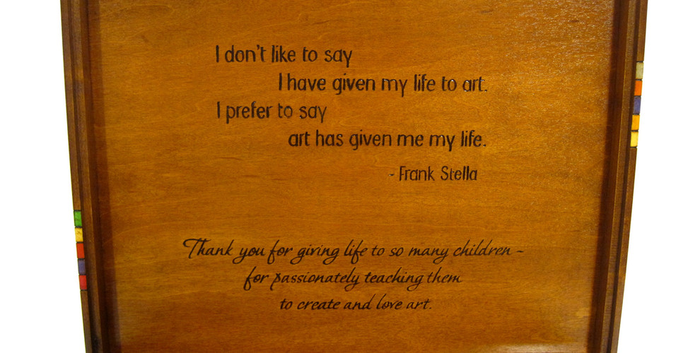 The inside of the lid bears a quote by Frank Stella, perfect for an art teacher who has dedicated so much of her life to teaching children to appreciate art.